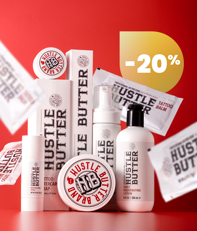 Jeśli zaś chodzi o kremy do tatuażu, gorąco polecamy produkty Hustle Butter Deluxe – należą do najlepszych preparatów pielęgnacyjnych do tatuażu, a przy tym można używać ich także przed sesją tatuażu i podczas niej! Bardzo lubimy też produkty Recovery Aftercare, w związku z czym kupisz u nas krem do pielęgnacji świeżych tatuaży, opatrunki, a także mydło do mycia świeżych tatuaży od tej marki.