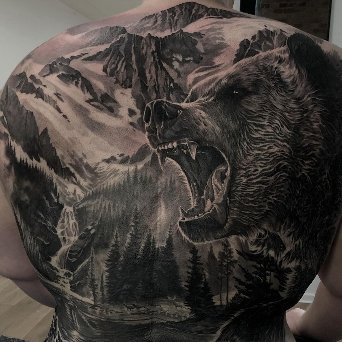 My style is based in black and grey realism, and my themes vary from natural to Greek/Roman and other cultures. The work I do is always large-scale and often covers vast amounts of the body. Still, my work doesn’t seem too dramatic, or vulgar in anyway – it’s mellow and easily readable.