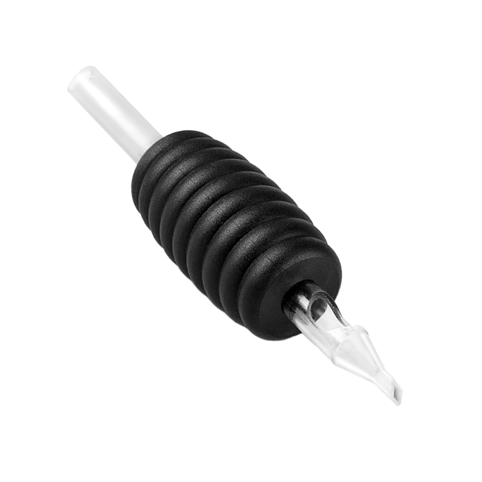 Pakiet 20 szt. jednorazowych rur/dziobów typu karo z gryfem 25 mm i silikonową rurą dla lepszej przejrzystości podczas tatuowania.