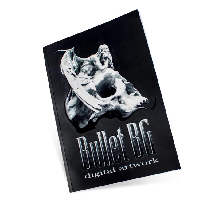Zajrzyj do książki autorstwa Bulleta BG, aby obejrzeć 50 oryginalnych cyfrowych grafik, mających stanowić projekty tatuaży. Zobacz, w jaki sposób Bullet BG jest w stanie dzięki umiejętnej obróbce graficznej zawrzeć w swoich pracach tak trudne motywy jak wojna, śmierć, religia, mitologia, czy bardziej standardowe portrety.