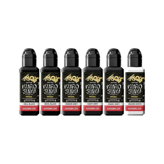 Kuro Sumi Imperial Greywash Shading - Zestaw tuszu do tatuażu, 6 x 44 ml