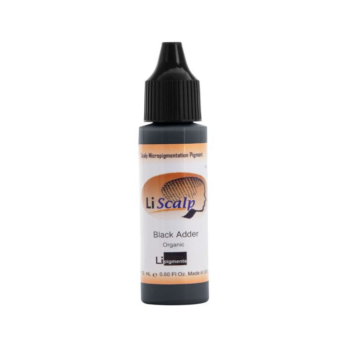 Li Pigments Black Adder to najgłębszy i najciemniejszy odcień czerni w palecie Li Scalp Organic. Używaj go wyłącznie jako domieszki do innych pigmentów. Z uwagi na opartą na węglu formułę, zalecamy go wyłącznie doświadczonym technikom.