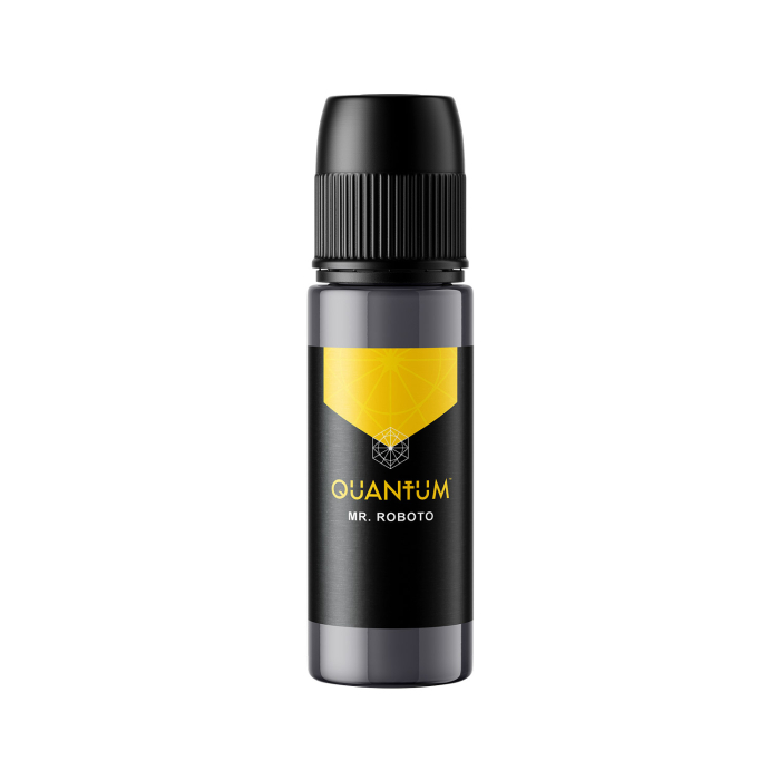 Mr Roboto to średniociemny szary tusz do tatuażu z lekką żółtawą nutą z palety Gold Label od Quantum Tattoo.