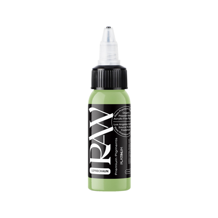 Leprechaun to jasny zielony tusz do tatuażu ze zgodnej z unijnym rozporządzeniem REACH linii tuszów Platinum od Raw Premium Pigments.