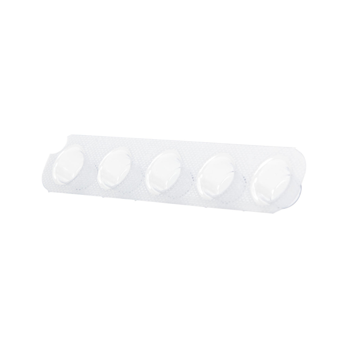 Pakiet 400 sterylnych, jednorazowych kubeczków na tusz w postaci 80 pakietów blistrów po pięć zagłębień na tusz o średnicy 13 mm każde.